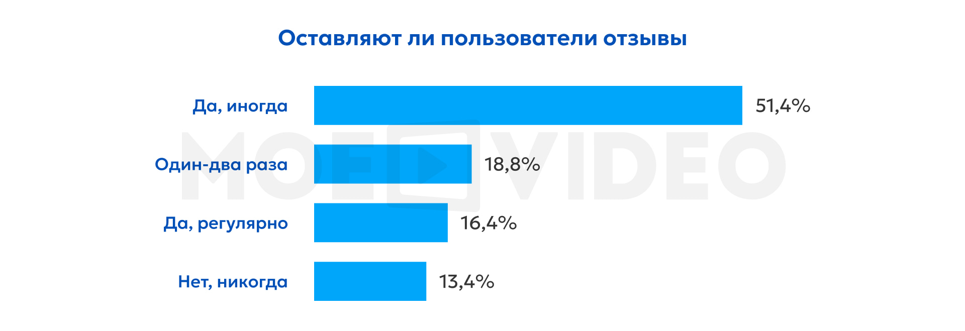 Подавляющее большинство респондентов участвуют в создании пользовательского контента: 86,6% имеют опыт публикации отзывов о товарах или услугах. Из них 16,4% делают это регулярно, 51,4% время от времени, и ещё 18,8% оставляли отзывы один–два раза.