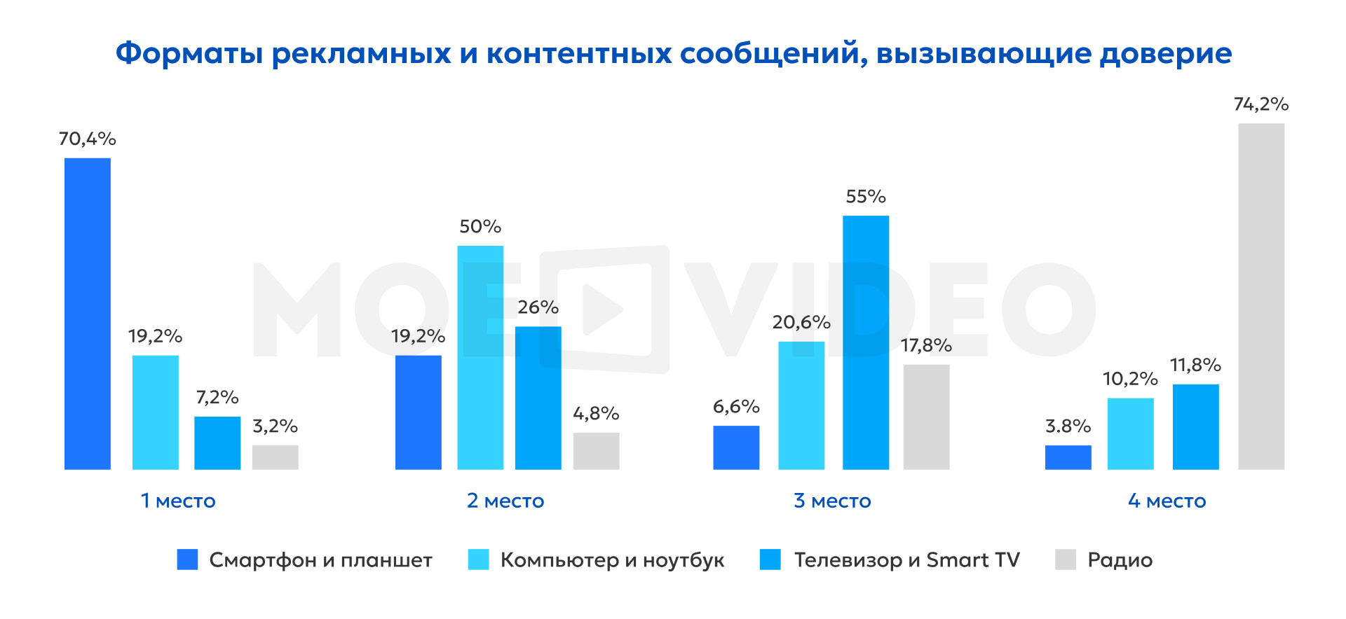 Мобильные устройства доминируют в потреблении UGC: более 70% респондентов назвали смартфон основным инструментом для просмотра отзывов и другого пользовательского контента. Компьютер остаётся важным, но второстепенным каналом — его использует около половины участников, чаще всего для изучения развёрнутых форматов, где важна наглядность и удобство навигации.